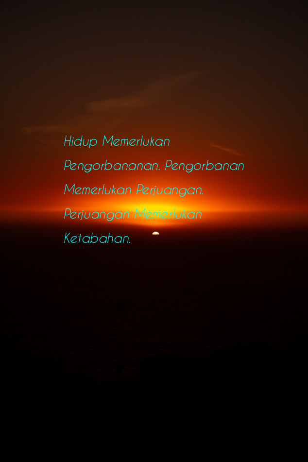 Ini dalah gambar dari : Hidup Memerlukan Pengorbananan. Pengorbanan Memerlukan Perjuangan. Perjuangan Memerlukan Ketabahan.
