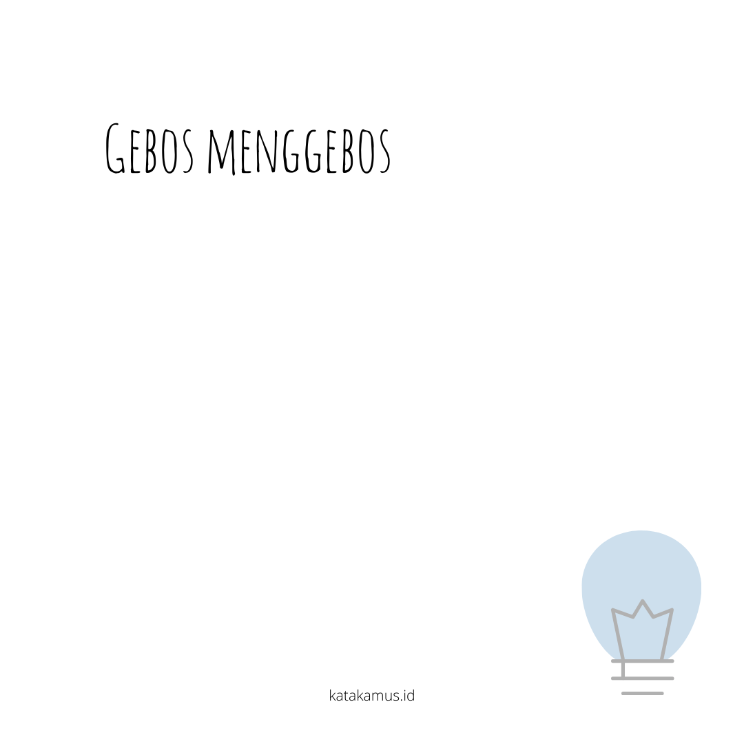 Apakah sinonim kata gebos, menggebos ? Sinonim dari kata gebos, menggebos adalah melabrak, meleja, memaki, memarahi, membentak, mencaci, mencerca, mencura, mendamprat, menengking, mengata-ngatai, menghamuni, menghardik, mengumpat, menjerkah, menyembur, menyemprot, menyentak, merampus, meredik