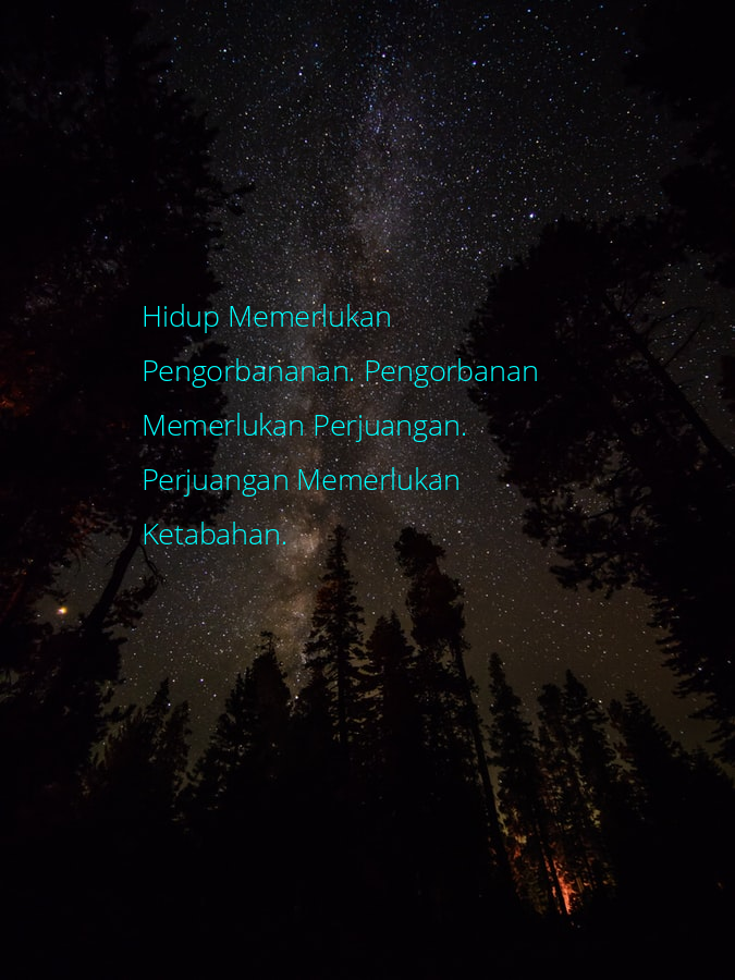 Ini dalah gambar dari : Hidup Memerlukan Pengorbananan. Pengorbanan Memerlukan Perjuangan. Perjuangan Memerlukan Ketabahan.